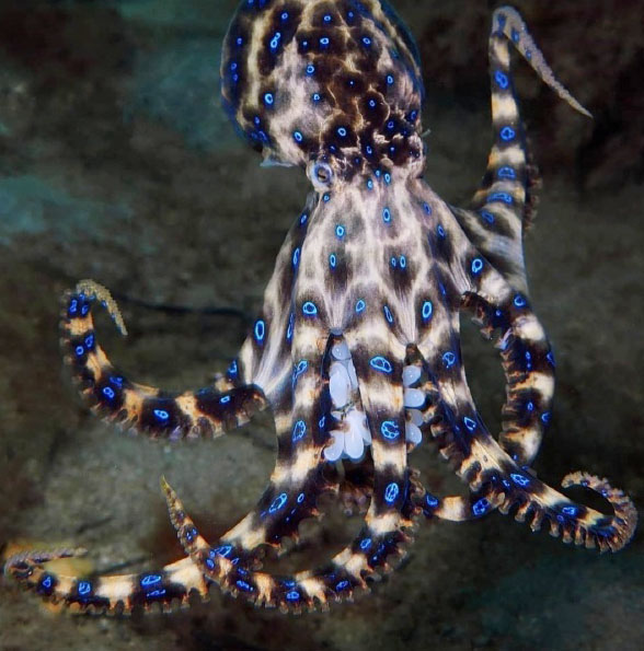 蓝环章鱼会用河豚毒素麻痹猎物,在海洋中属于剧毒生物之一