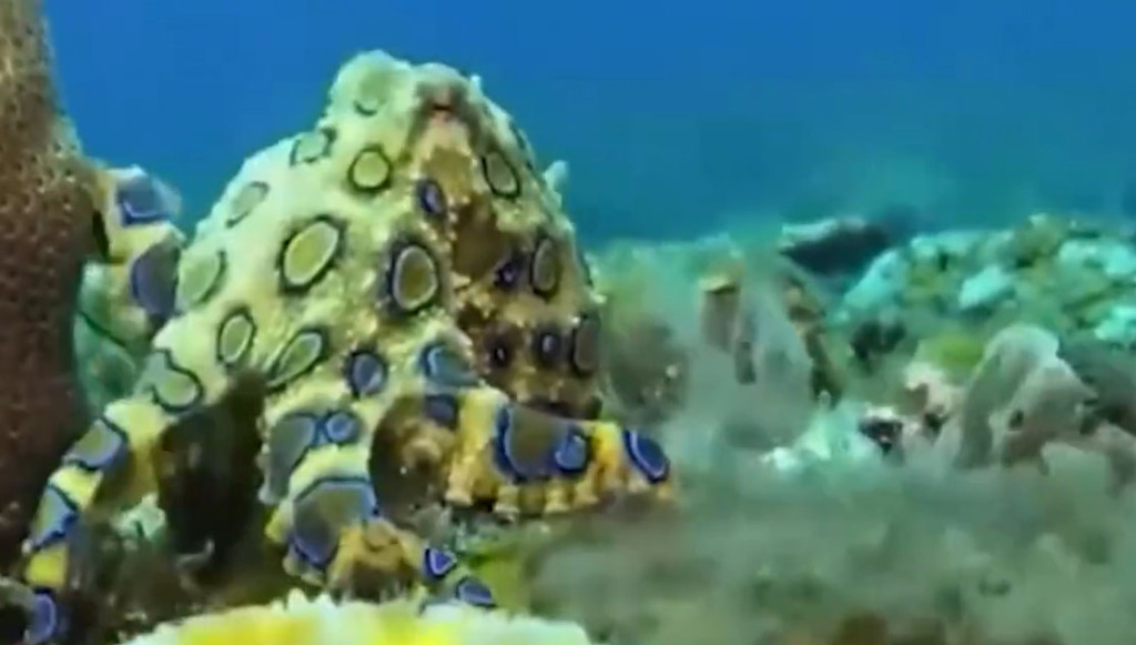 ▲“蓝环章鱼”在海洋中属于剧毒生物之一。 网图