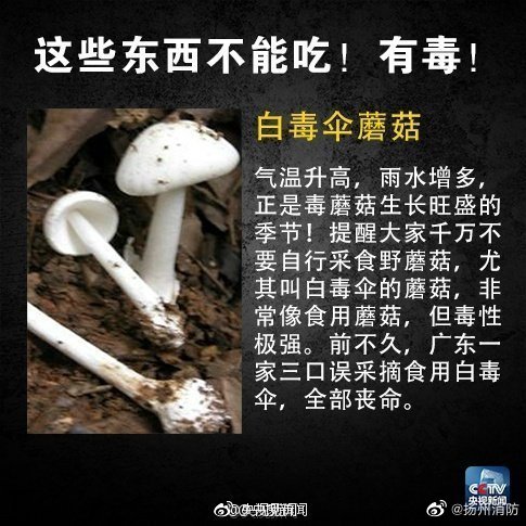 另外,扬州消防在官方微博亦转发信息,并提醒民众,其实有多种食物亦含毒避免进食。