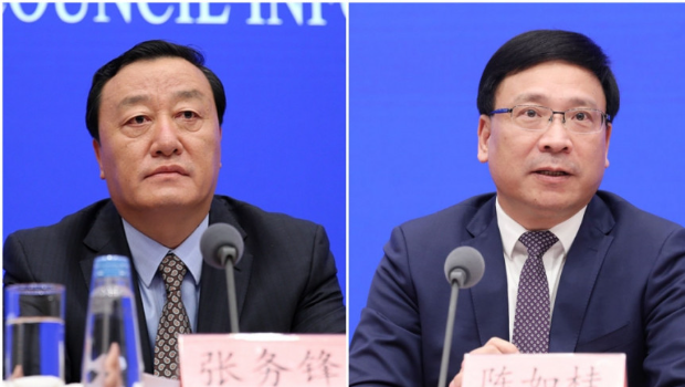 ▲最高检宣布逮捕张务锋(左)和陈桂如(右)两名前部级官员。