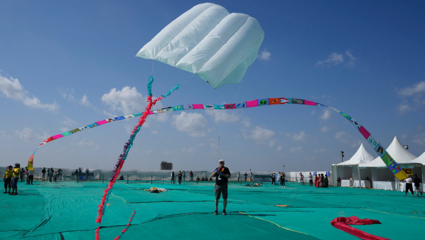 ▲印度古吉拉特邦国际风筝节巨型风筝。路透社