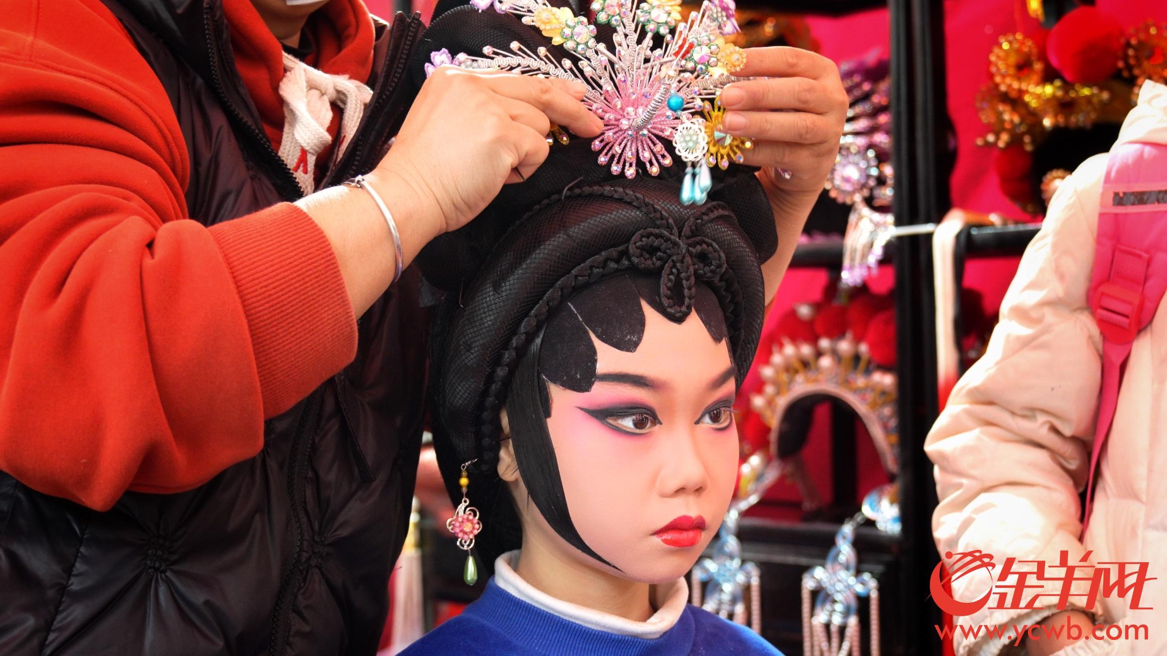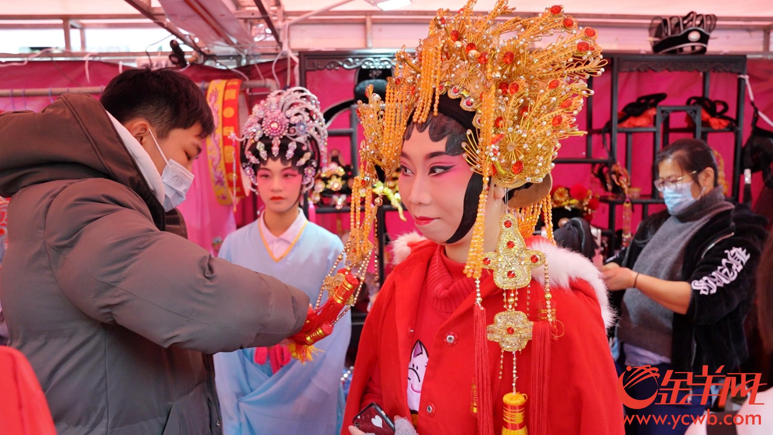On the opening day of the event, various activities such as Cantonese opera makeup and singing Cantonese opera were presented together. People participated in the activities, and the jubilant New Year atmosphere permeated Xiguan.