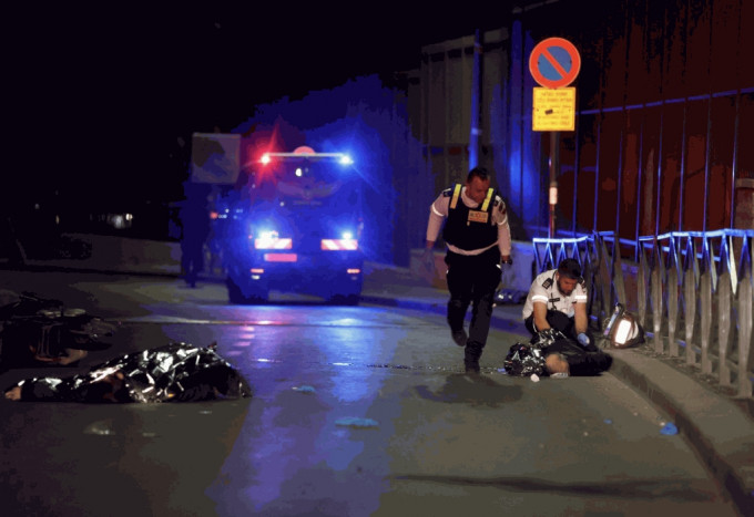 ▲教堂外马路是案发现场之一,以色列警察在处理其中一具尸体。路透社