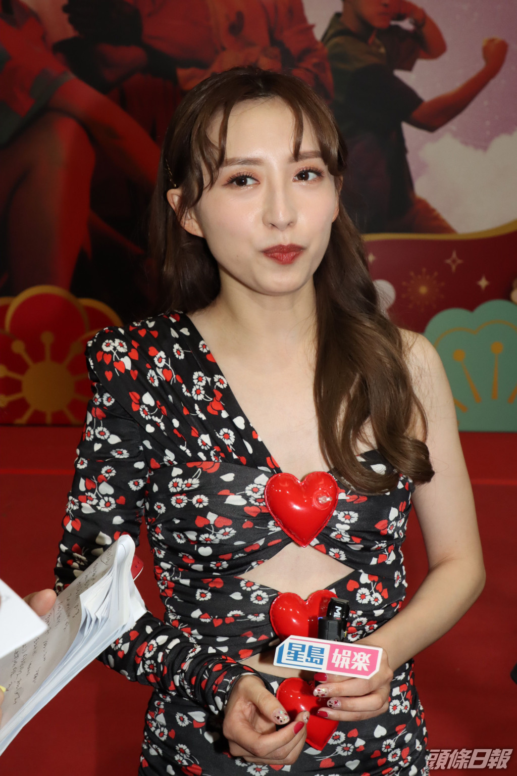 ▲龚嘉欣着心心开窿短裙似隔空向对象示爱。