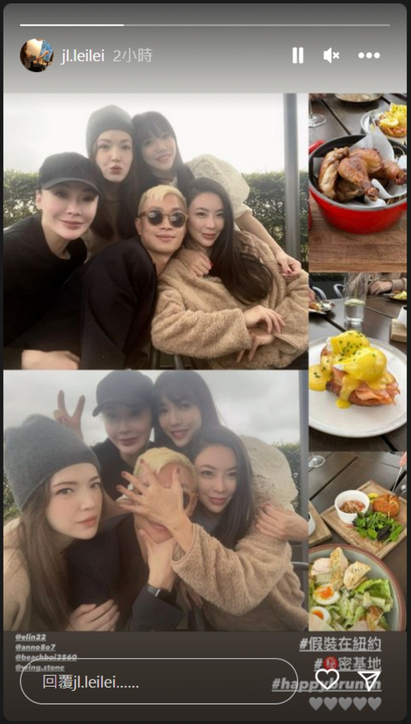 随着王力宏日前以开演唱会宣布复出后,李靓蕾近况也令外界相当好奇,而她今日也在Ins限时动态上晒照,分享与好友们聚会的合照,右下角写着:“假装在纽约,秘密基地”,还透露是个开心的早午餐约会; 画面中李靓蕾对着镜头笑得很灿烂,整个人甜美又精神饱满。