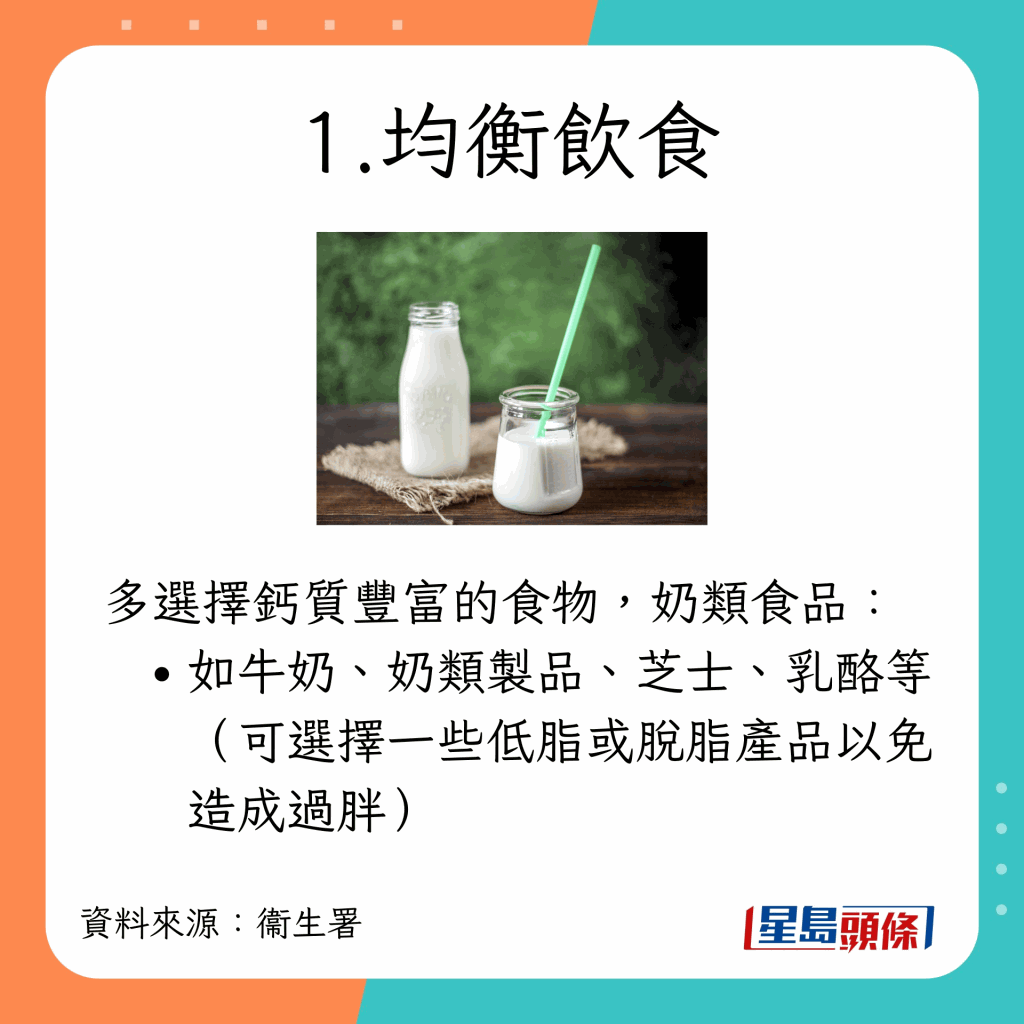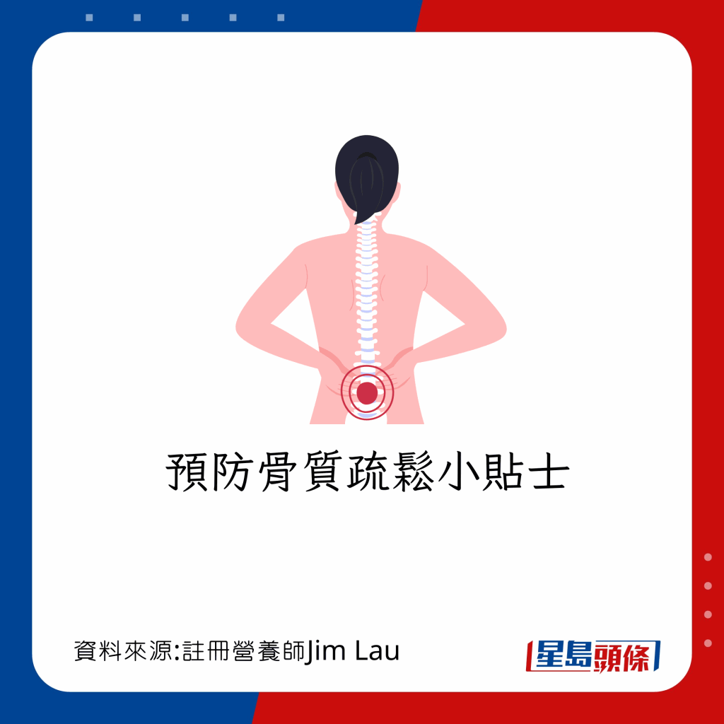 注册营养师Jim Lau教4个预防骨质疏松的小贴士: