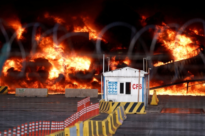 ▲伊斯肯德伦港口(Iskenderun)在最初的地震后便发生大火,已连烧2天。 路透社