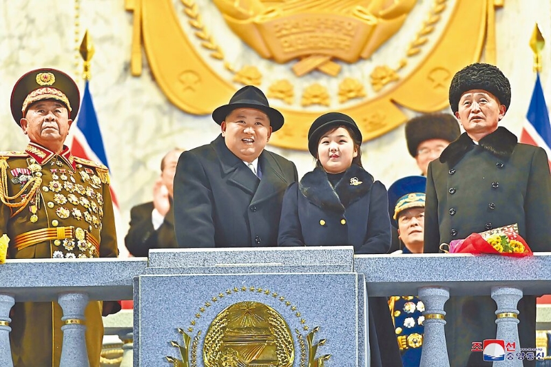 朝鲜周三晚举行盛大阅兵仪式,庆祝建军75周年,领袖金正恩偕夫人李雪主及爱女金主爱(又译:金朱爱)出席。本次阅兵展出朝鲜大批武器包括新型洲际弹道导弹,以及战术核武部队。