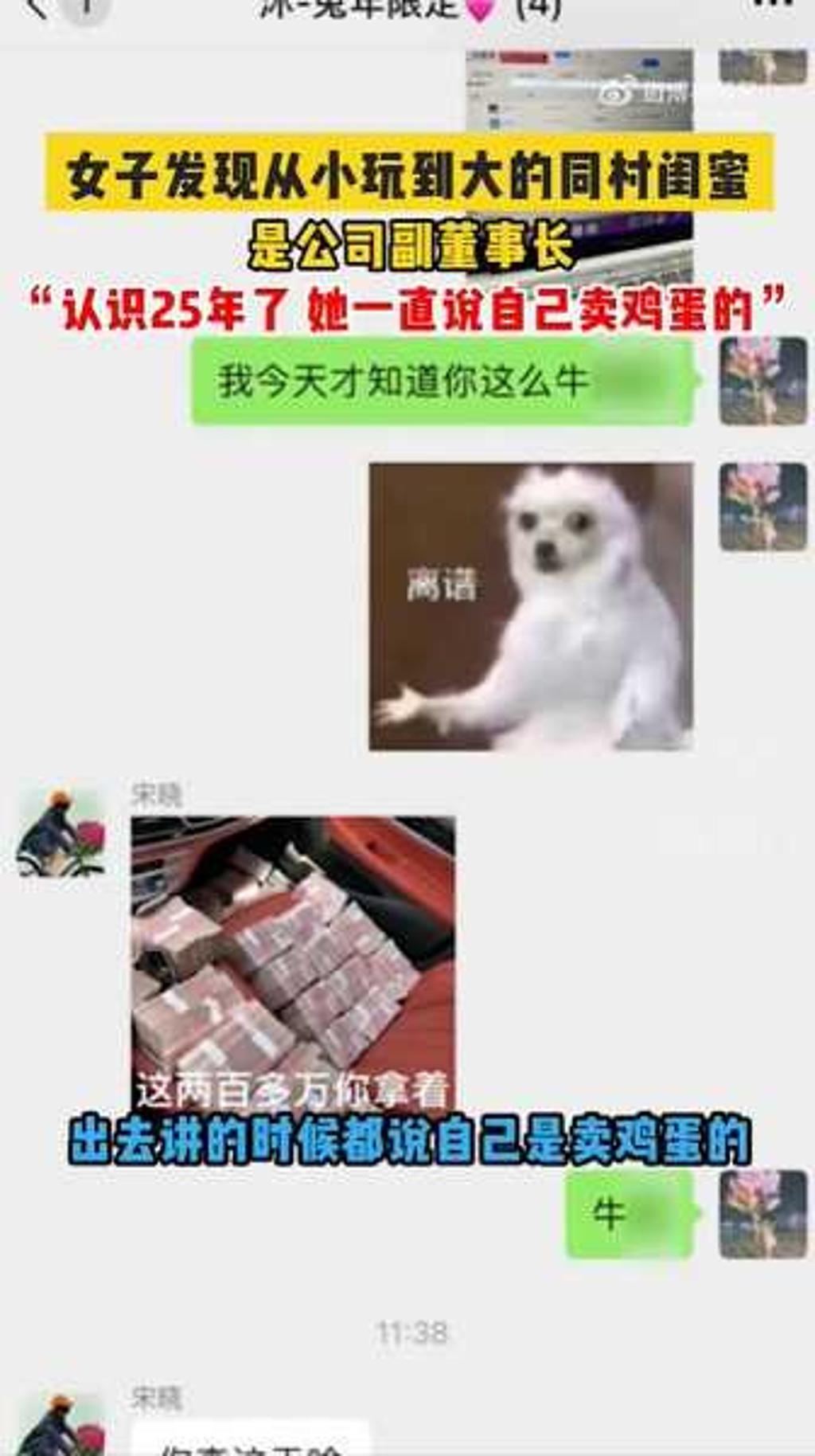 河南省郑州市有一名女子,近日发现认识25年的同村闺蜜,竟是公司副董事长,由于2人从小玩到大,几乎天天见面,平常询问工作内容,对方总说自己是卖鸡蛋的,如今得知真相令她目瞪口呆。