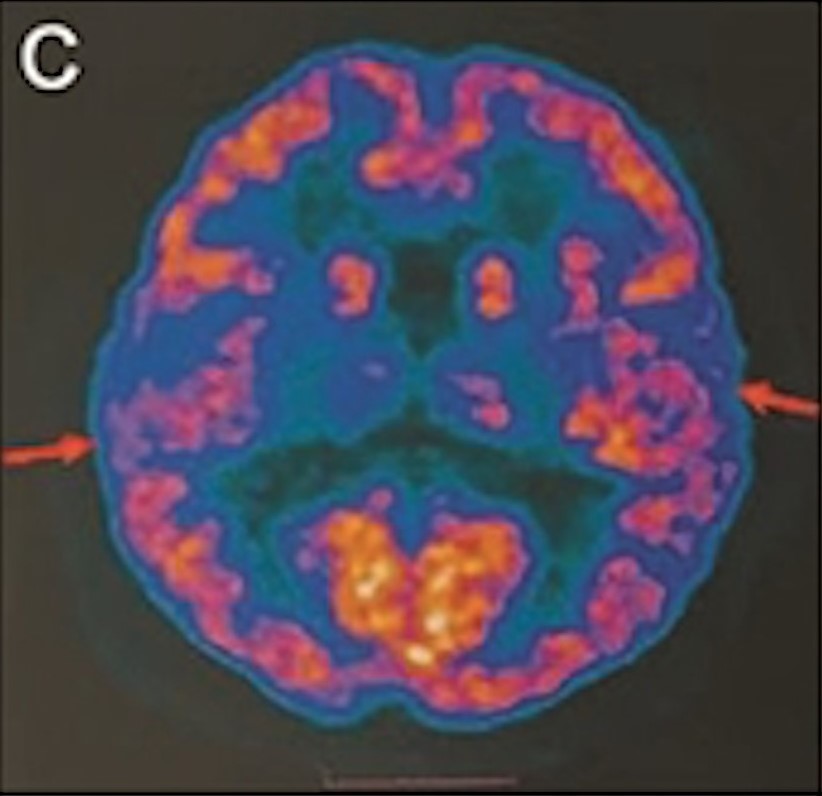 最年轻的19岁阿兹海默症男子脑部扫描结果:
