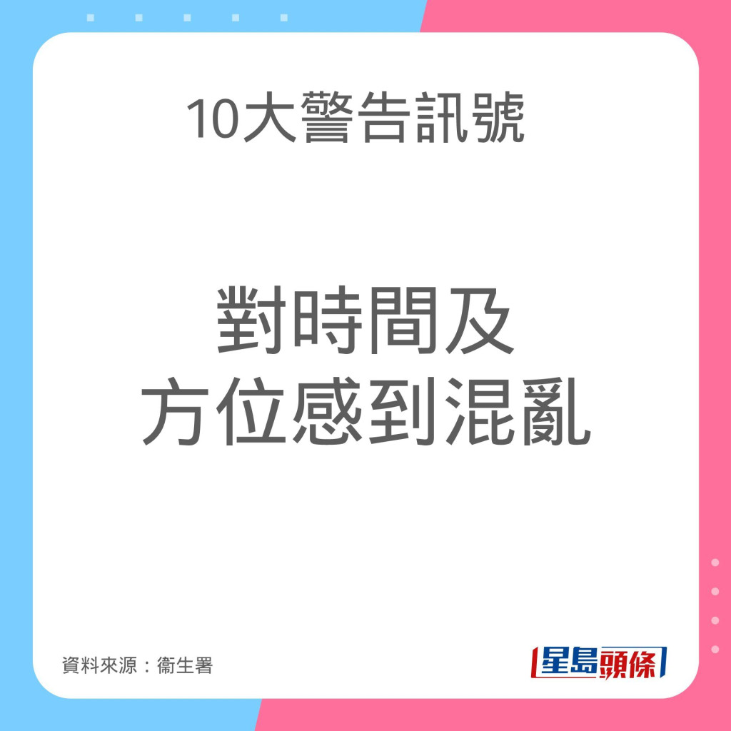 卫生署指,若出现以下情况,或是患认知障碍症的警告讯号: