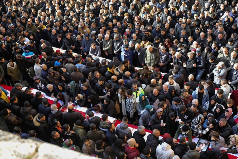 北塞浦路斯土耳其共和国一城镇民众今天为命丧土耳其强震39人排球校队中的两人送葬。 该校队赴土耳其参加排球比赛,不幸遭遇强震而客死异乡。