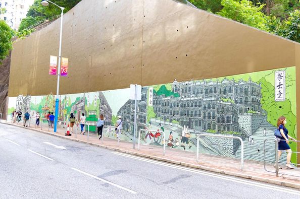 ▲坚尼地城石山街出现全新巨型壁画。图片来源:民政事务总署