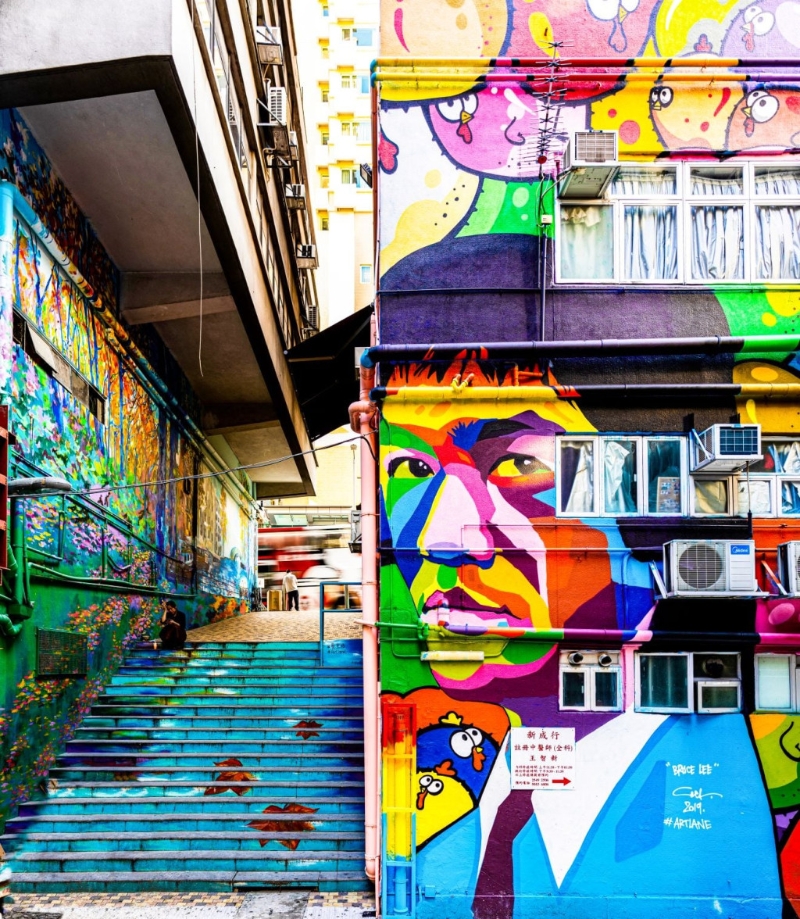 同样位于港岛的壁画打卡胜地有西营盘,“艺里坊ARTLANE”是16幅大型七彩壁画的集中地,每幅都由不同艺术家绘画,打卡位各有特色,如充满香港特色的维港壁画以及西方小镇的大街风景等等,附近更有不少文青Cafe,是西营盘一日游必去景点。