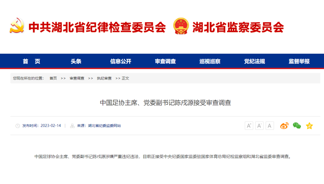 2月14日,湖北省纪委监委发布公告,中国足协主席、党委副书记陈戌源因严重违纪违法接受审查调查。从码头工人到集团董事长,从初入足球圈的国企高管到全票当选中国足协主席,从在中国足坛掀起大刀阔斧的改革到最终接受调查,陈戌源紧随时代浪潮的狂飙之途充满着各种“不可思议”。