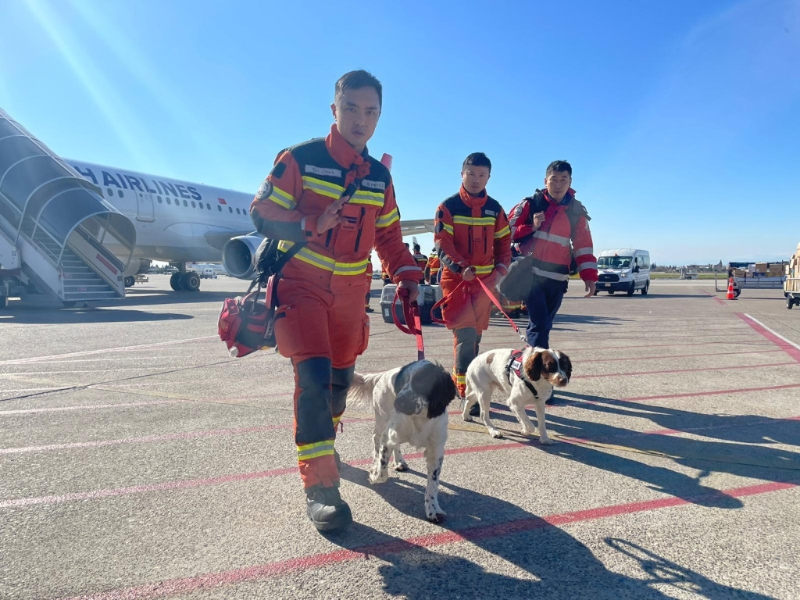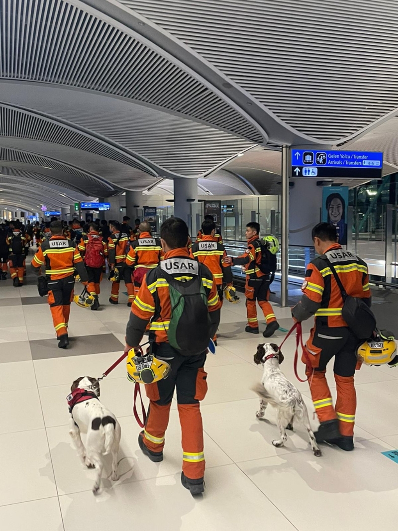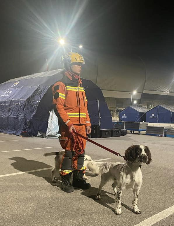 ▲消防处领犬员带同搜救犬Um及Twix随特区救援队前往土耳其地震灾区。