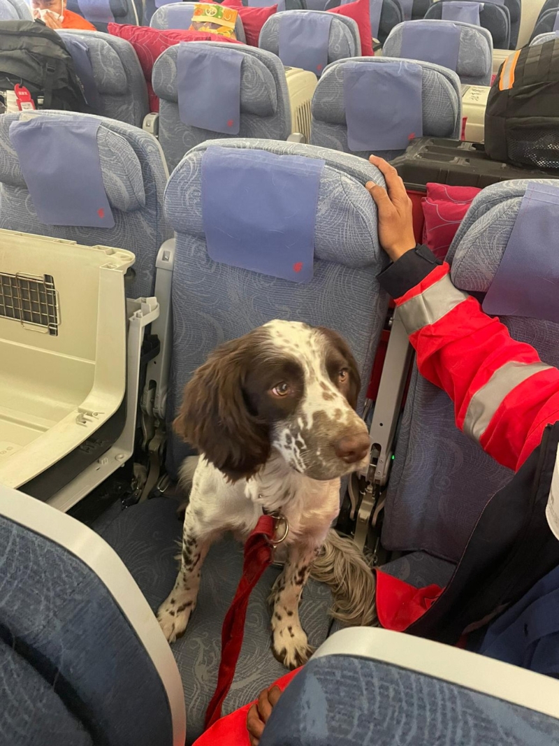 ▲搜救犬Umi乘搭航机感到十分兴奋。