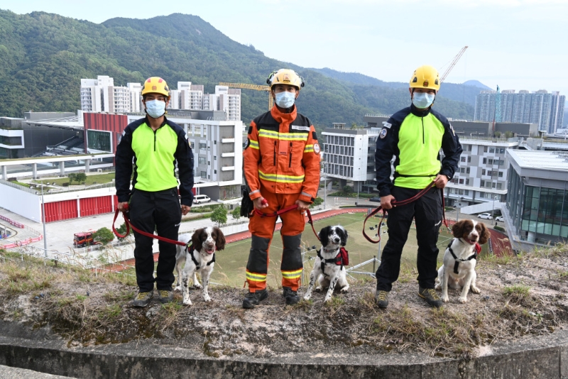 消防处现时共有6只搜救犬,它们均为史宾格犬,服从性高、性格温驯、体型细小,动作灵活,可在大范围面积进行搜索,又可上山越过斜坡及丛林等,一些消防员无法进入的范围,而搜查犬都可以轻易进入,快速发现是否有失踪人士及伤者在现场。