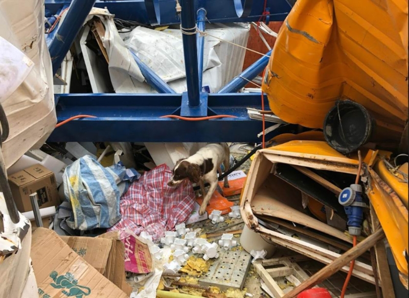 ▲搜救犬Twix去年8月参与安达臣道地盘天秤倒塌意外的搜救工作。 图片由消防处提供
