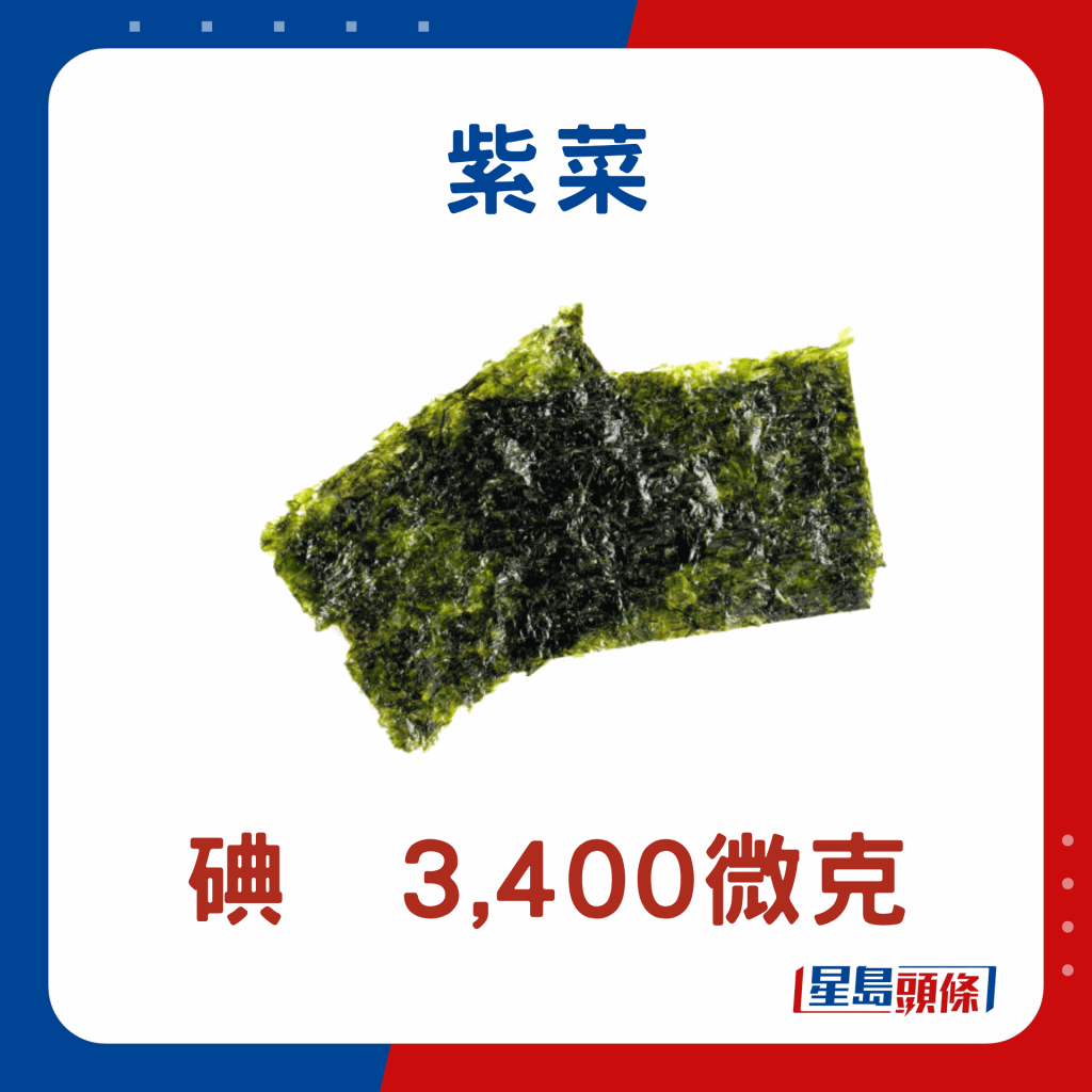 此外,紫菜含丰富碘质,对维持正常甲状腺功能,制造甲状腺素及发育成长非常重要。