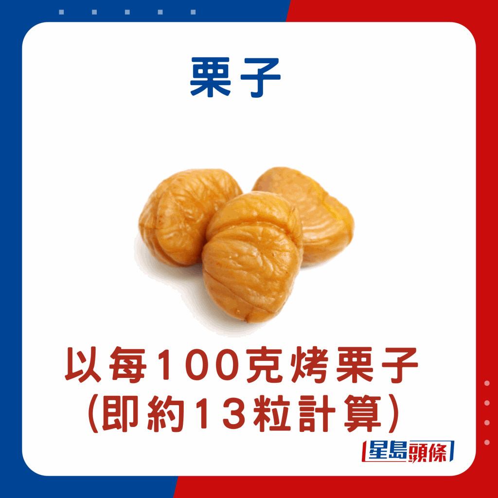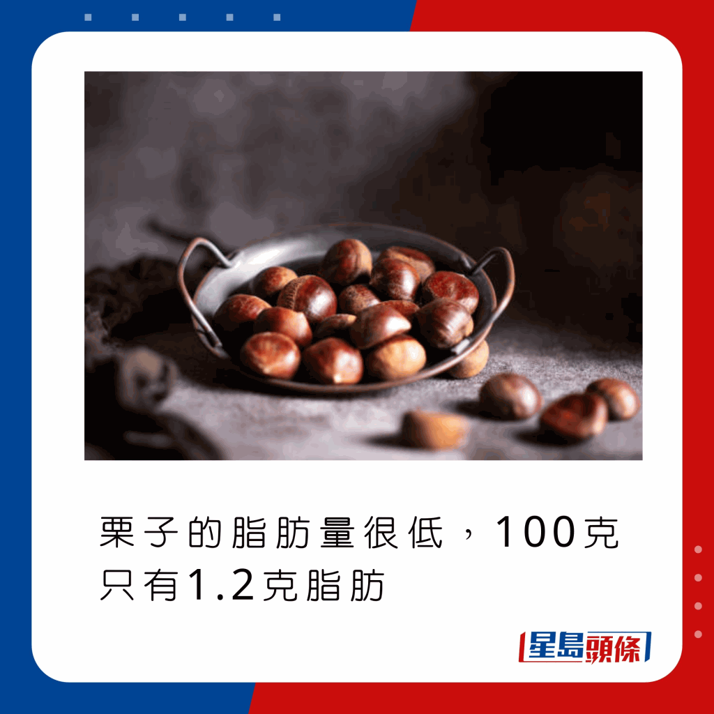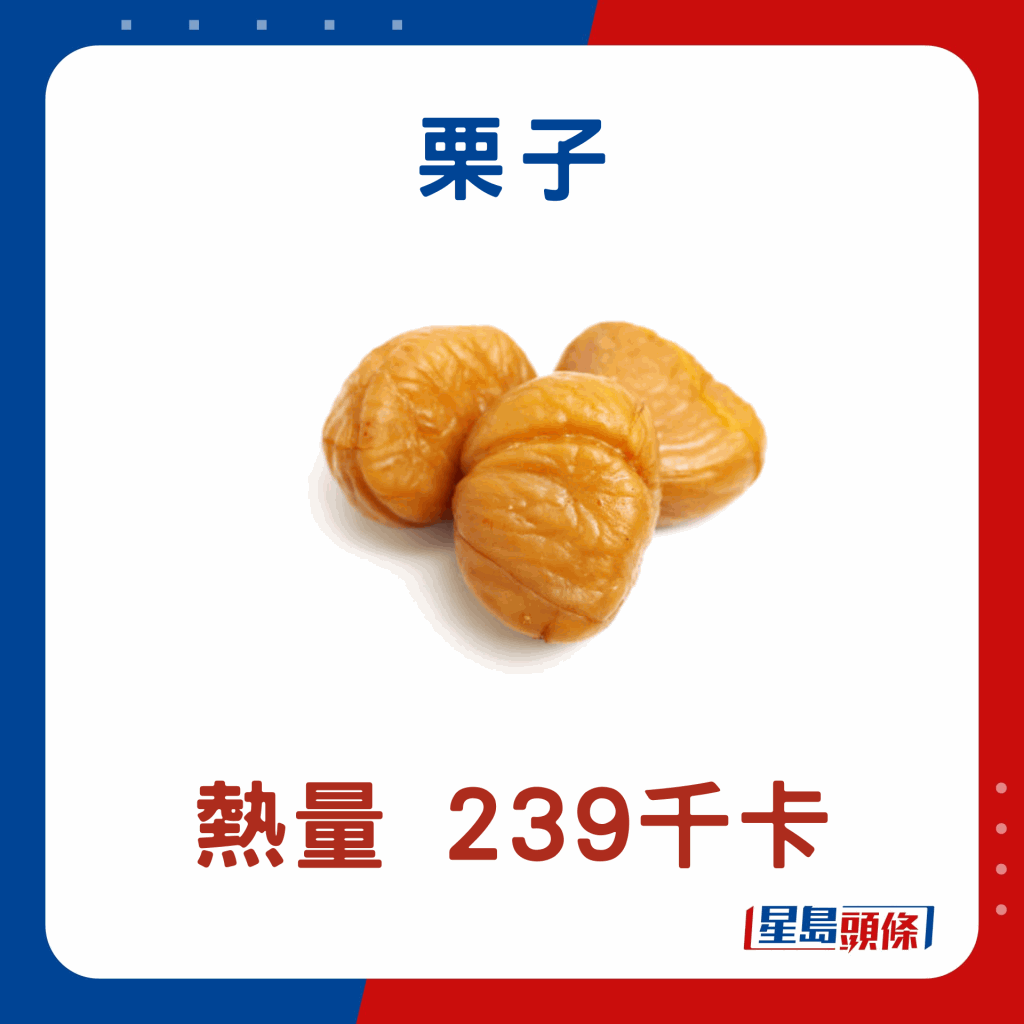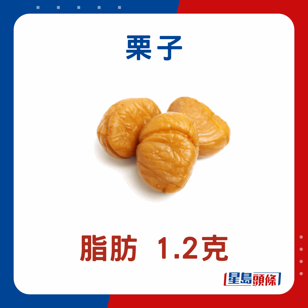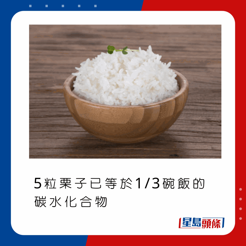大概5粒栗子已等于1/3碗饭的碳水化合物,故进食时需注意分量。