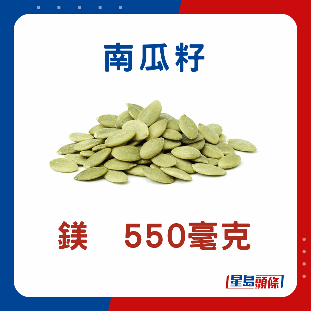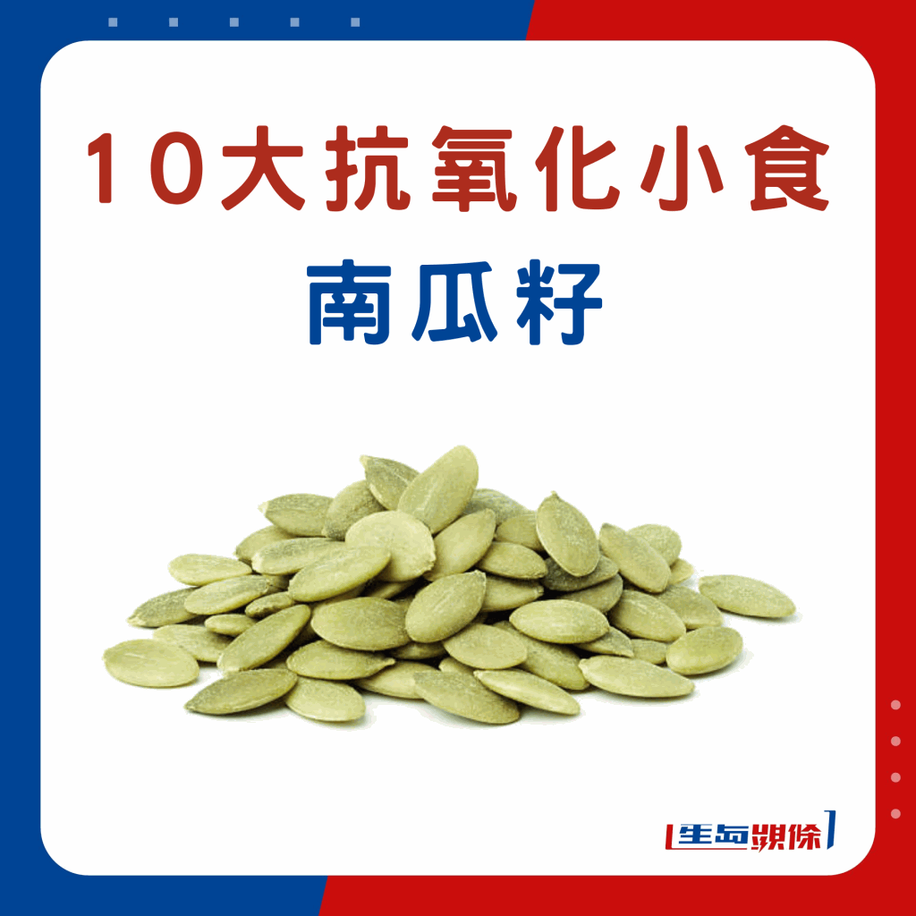 南瓜籽含丰富镁质,有研究指镁质缺乏症可能使体内自由基与抗氧化物间失衡,有助抗衰老。