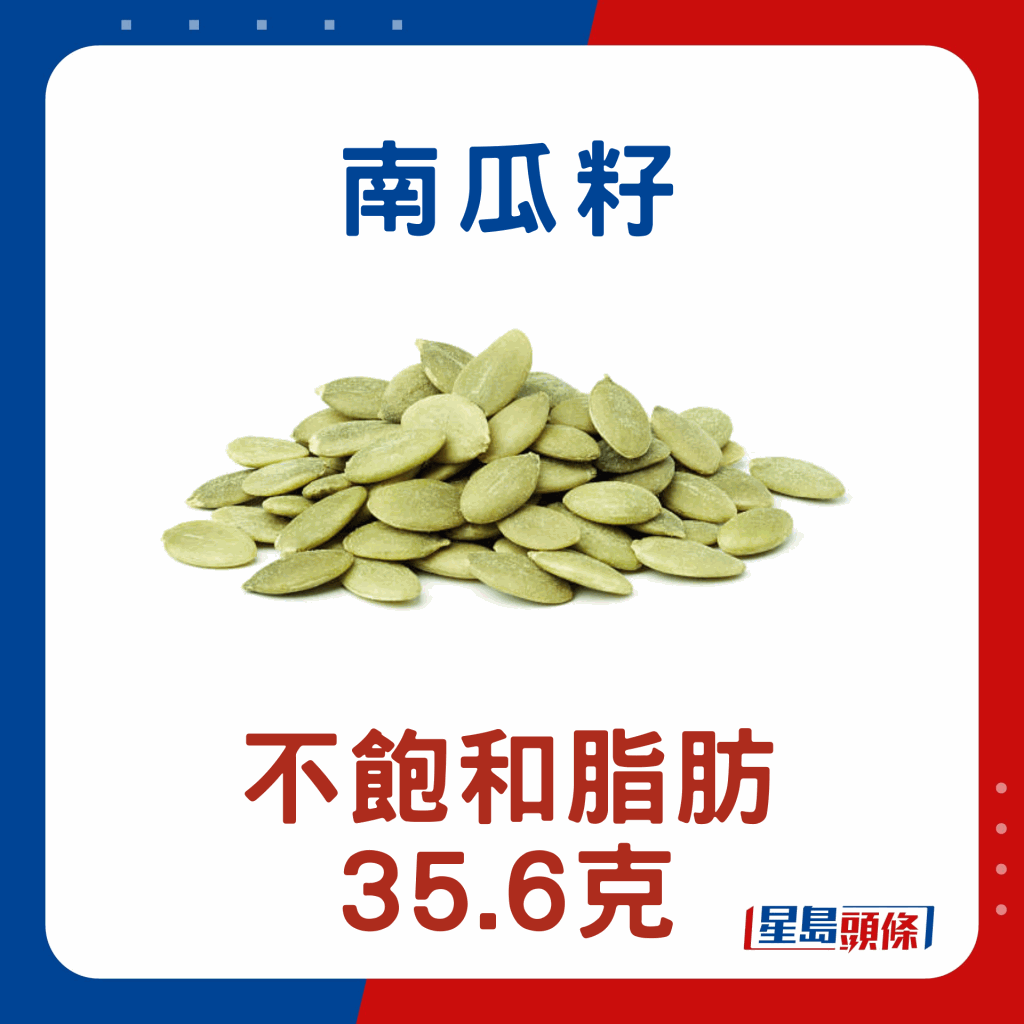 南瓜籽含丰富不饱和脂肪酸,占整体脂肪的73%,对预防各种慢性疾病,包括胆固醇控制、预防心脏病等都有帮助。
