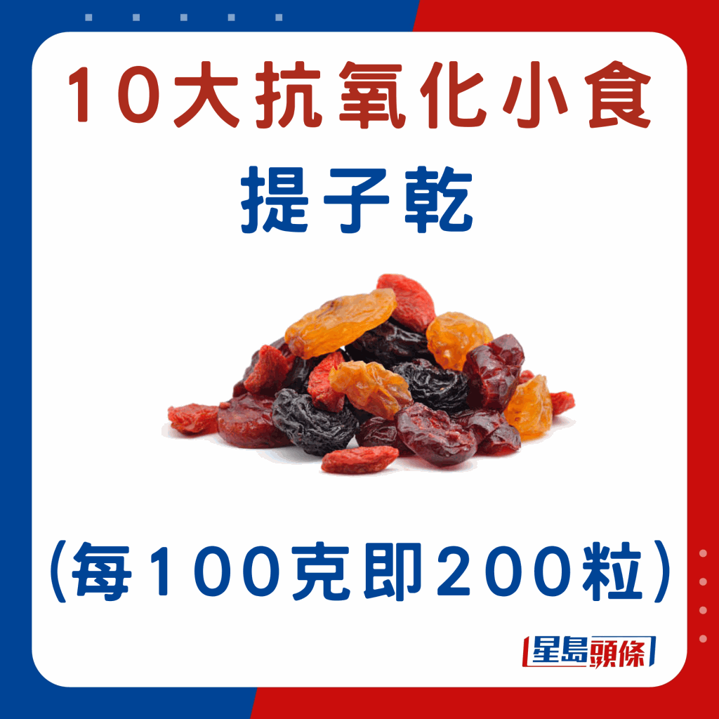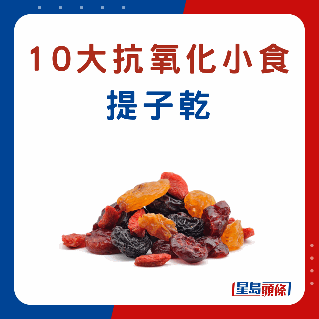 有研究显示提子干的多酚含量比西梅干、杏脯干、红提子、车厘子等高。