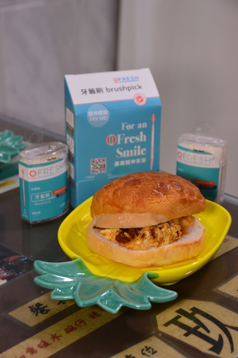 先来一客菠萝包雪糕,菠萝包香脆而温热的外皮,配上两种不同口味的雪糕,冷热之间的感觉相当有趣!再来一客芝士肉丁炒蛋菠萝包,芝士、肉丁、炒蛋,通常都会出现于汤面当中,今次将一众食材放在菠萝包内,咸甜交错。然后就轮到日式鸡扒菠萝包,三款菠萝包当中,这一款表面看来卖相最普通,但原来暗藏惊喜!菠萝包内的日本鸡扒,居然伴有明太子沙律酱,明太子不是粒状,而是呈立体方形,吃来十分有咬口,再加上日式紫姜,满足而不腻口。