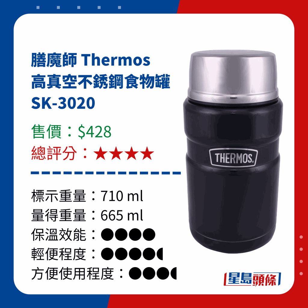 “膳魔师Thermos”高真空不锈钢食物罐SK-3020($428)