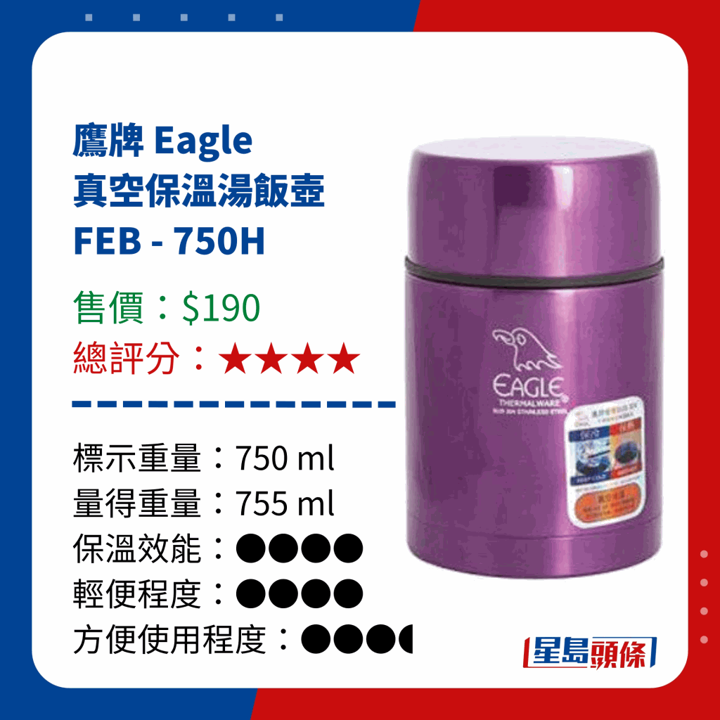 “鹰牌Eagle”真空保温汤饭壶SUS 304($190)