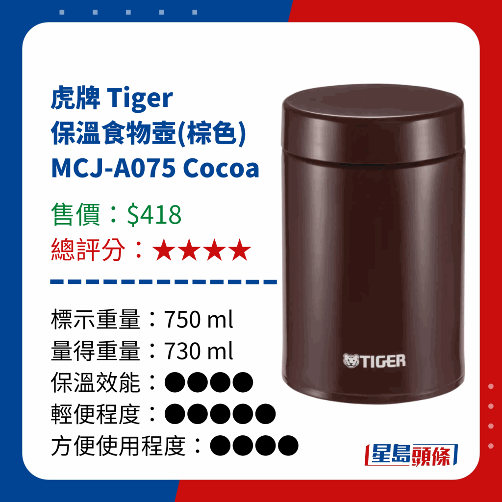 “虎牌Tiger”保温食物壶MCJ-A075($418)