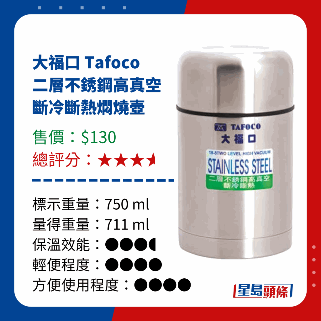 “大福口Tafoco”二层不锈钢高真空断冷断热HTH-750($130)