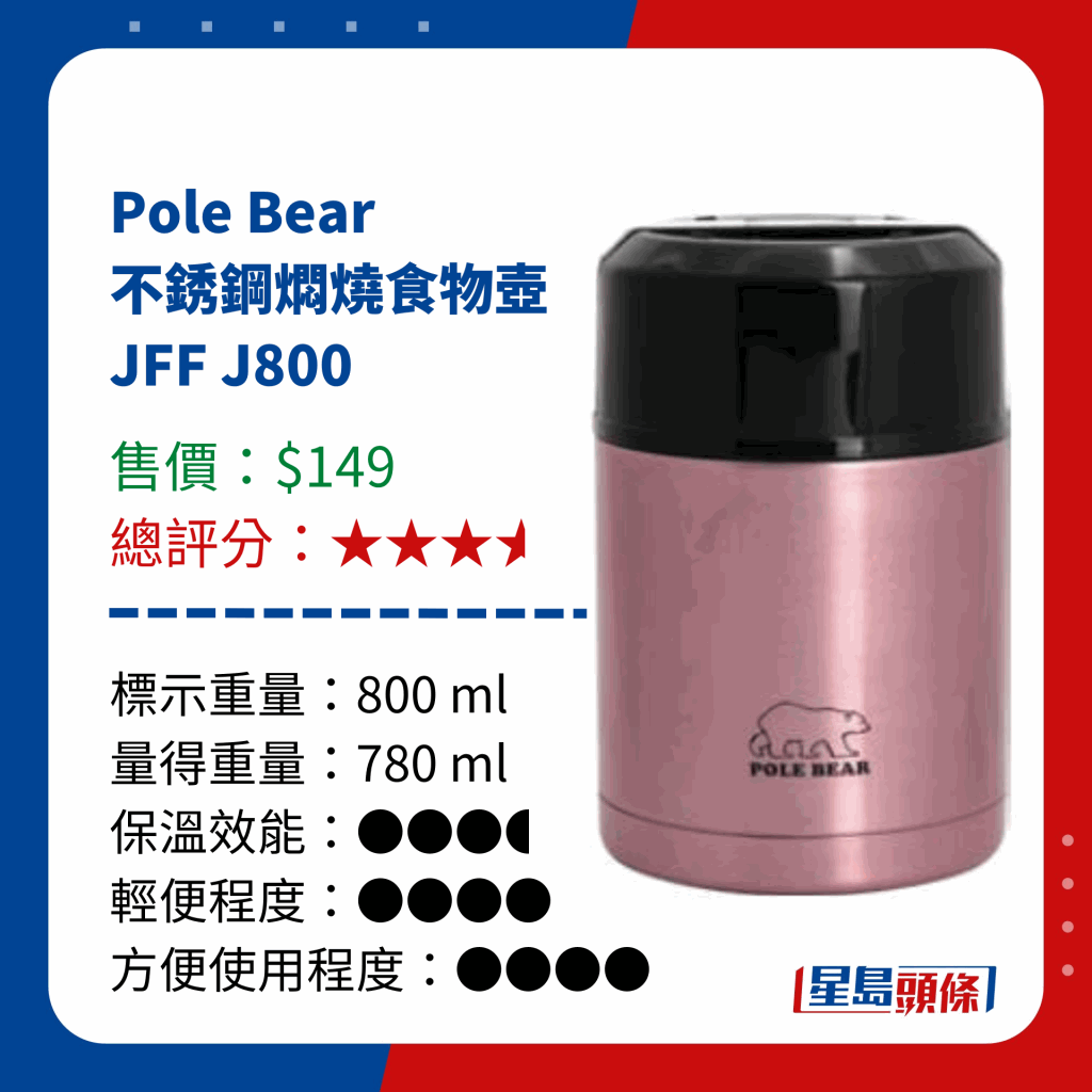 “Pole Bear”不锈钢焖烧食物壶JFF J800($149)