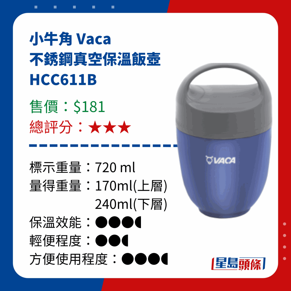 “小牛角Vaca”不锈钢真空保温饭壶HCC611B($181)