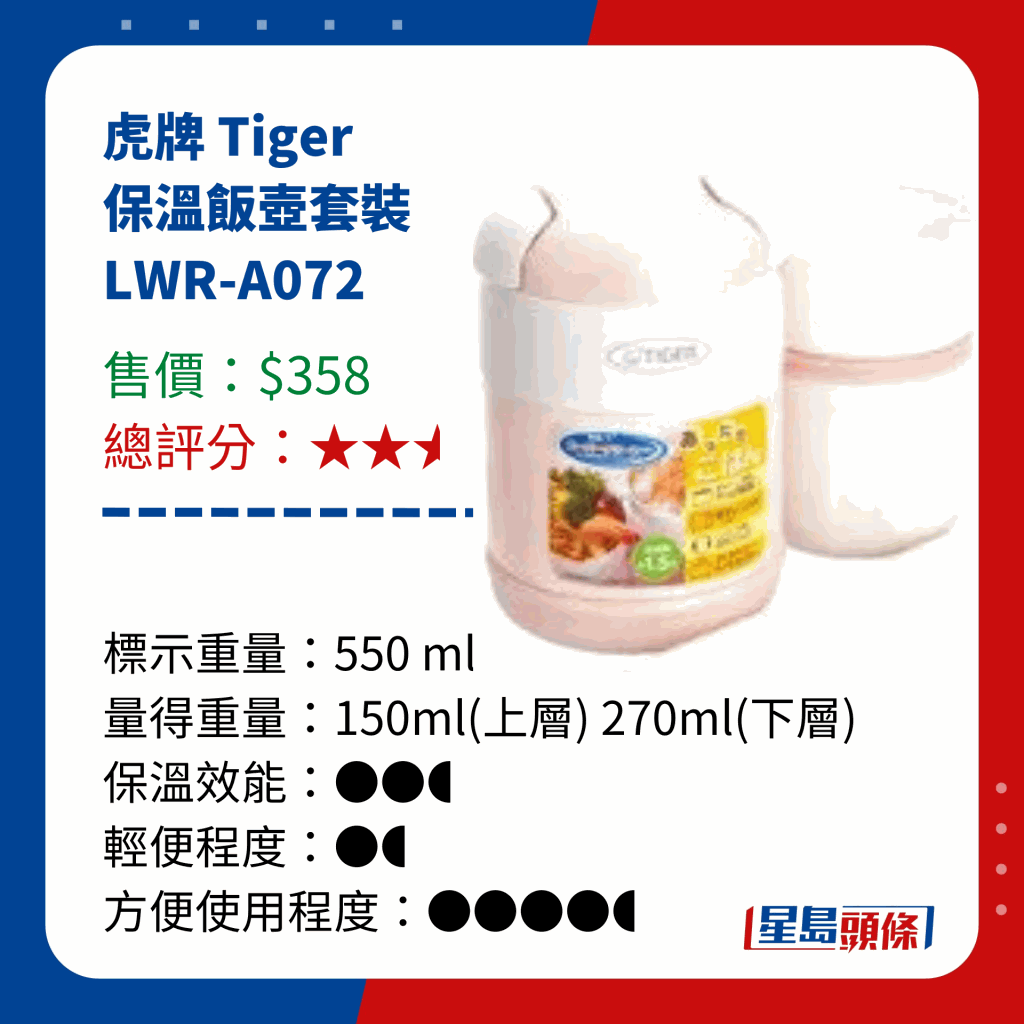 8 款焖烧壶价格由 130 元至 449 元,其中 1 款 190 元及最贵 449 元的样本总评同获4分;7 款保温饭壶每套售价由 169 元至 468 元,其中 1 款 181 元及另 1 款 409 元的样本总评得 3 分,同为表现最佳的保温饭壶,相比测试中最贵的样本略胜一筹。