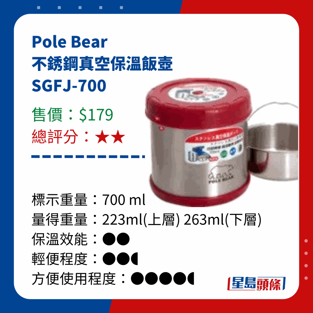 “Pole Bear”不锈钢真空保温饭壶SGFJ-700($179)