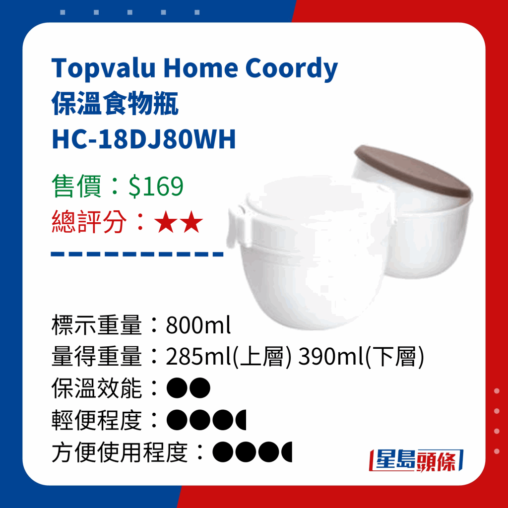 “Topvalu”Home Coordy保温食物瓶HC-18DJ80WH($169)