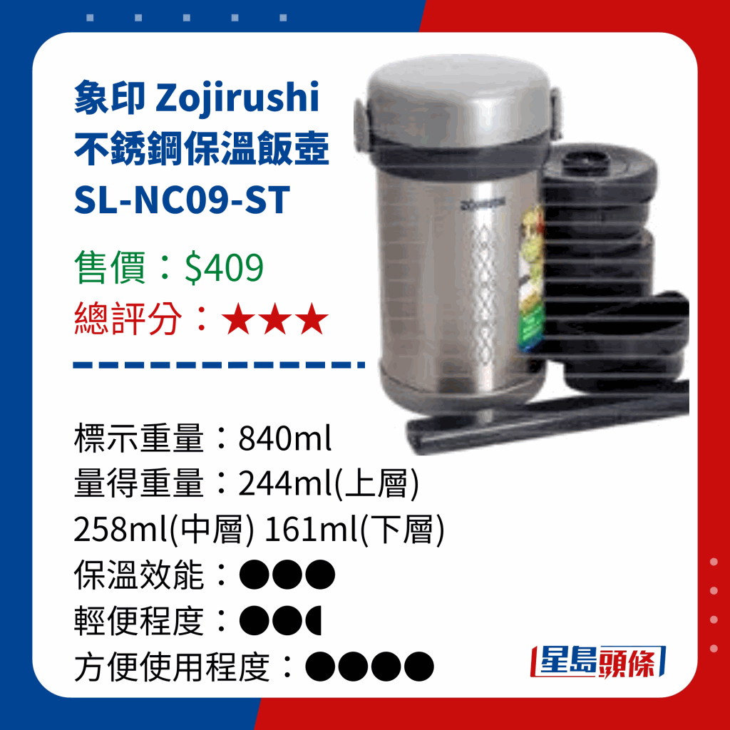 “象印Zojirushi”不锈钢保温饭壶SL-NC09-ST($409)