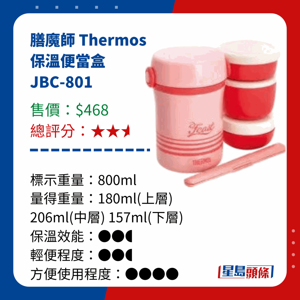 “膳魔师Thermos”保温便当盒JBC-801($468)