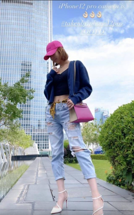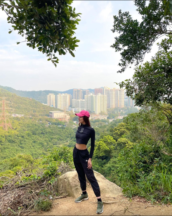 ▲昨日她在社交平台贴了爬山的照片,身形FIT爆!