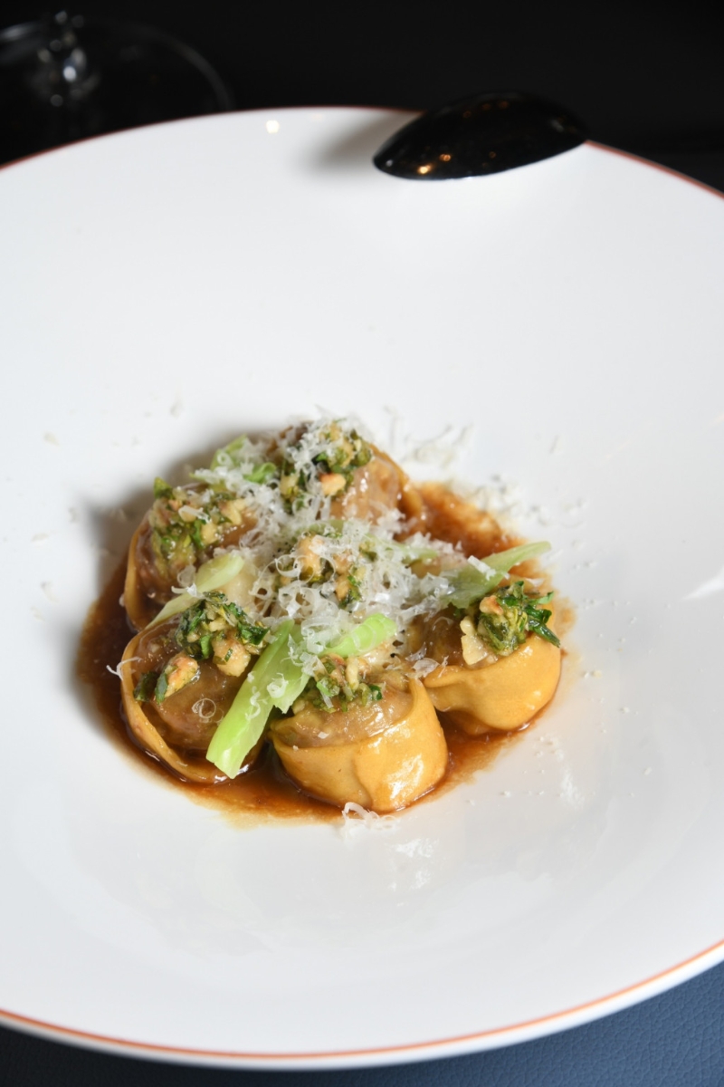 ▲酒香杂菜烩小牛云吞薄薄又富咬口的云吞皮里面,是鲜香幼嫩的小牛肉,口口浓郁滋味。