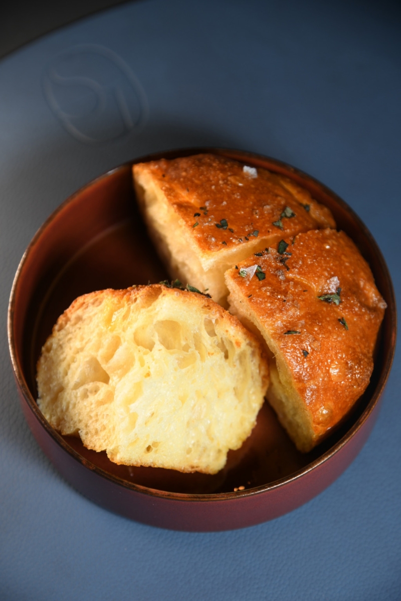 至于日本鲭鱼,Jun也有独特的烹调技巧。鲭鱼混合适量的盐和醋腌制两小时,上碟前才轻轻用明火烧香表面,配以清新爽脆的青瓜粒、水瓜柳及莳萝,中和了鲭鱼丰腴的油脂。此外,时令鲜鱼如鲷鱼的做法,是加柠檬及味噌腌制二十四小时,再放入烤焗炉中烹煮,呈现微微焦香的烟熏味,保持鱼肉水分,吃起来鲜甜肉汁丰富。