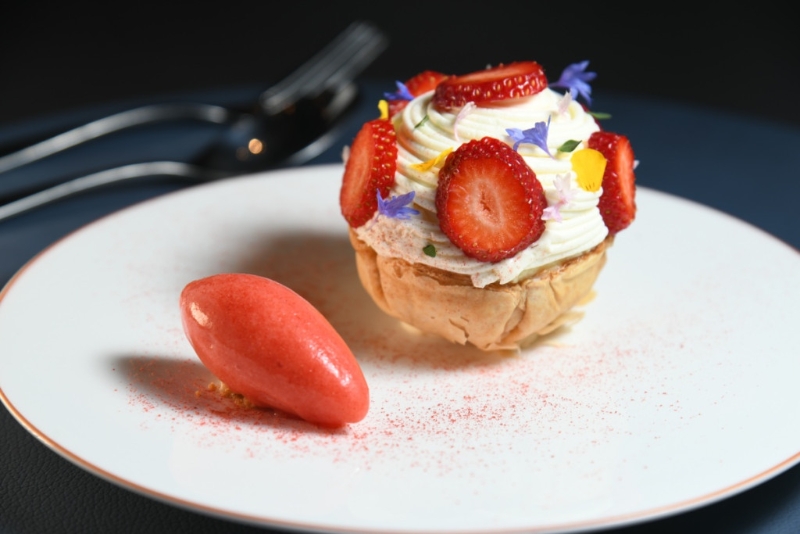 ▲草苺派,松脆的牛油酥皮加柠檬酱和草苺流心,配合白巧克力奶油 ,甜而不腻。