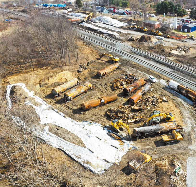 俄州的环保厅负责人沃格尔(Anne Vogel)表示,事故现场除了国家运输安全委员会(NTSB)要求留下的11节车厢外,其余出轨车卡均已移走,以便清理人员挖掘更多土壤,并安装监测井检查地下水质。
