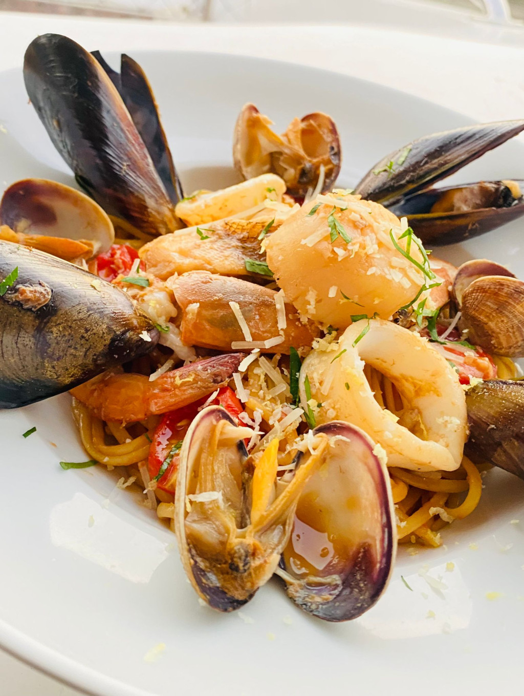 餐厅提供西餐、日本菜及印度菜多国菜式。蕃茄海鲜扁意粉 ($118) 配上青口、带子、鱿鱼、鲜虾及大蚬,香气四溢、爽嫩鲜甜。酱烧牛油鸡块($148) 是水平之作,咖哩味道正宗。天多利烤焗羊架($298) 火喉恰到好处,没有强烈的羊膻味,肉质鲜嫩肉汁浓郁。