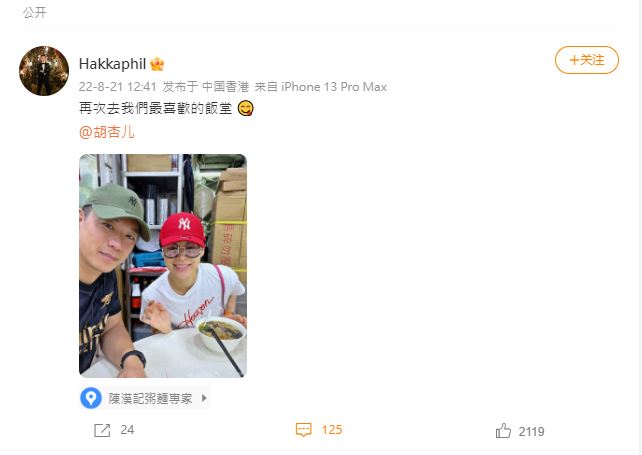▲胡杏儿及其老公李乘德经常都在社交媒体,上载在陈汉记品尝美食的相片。