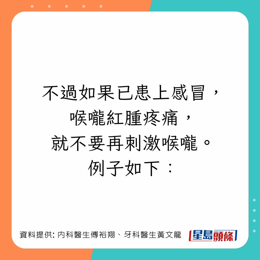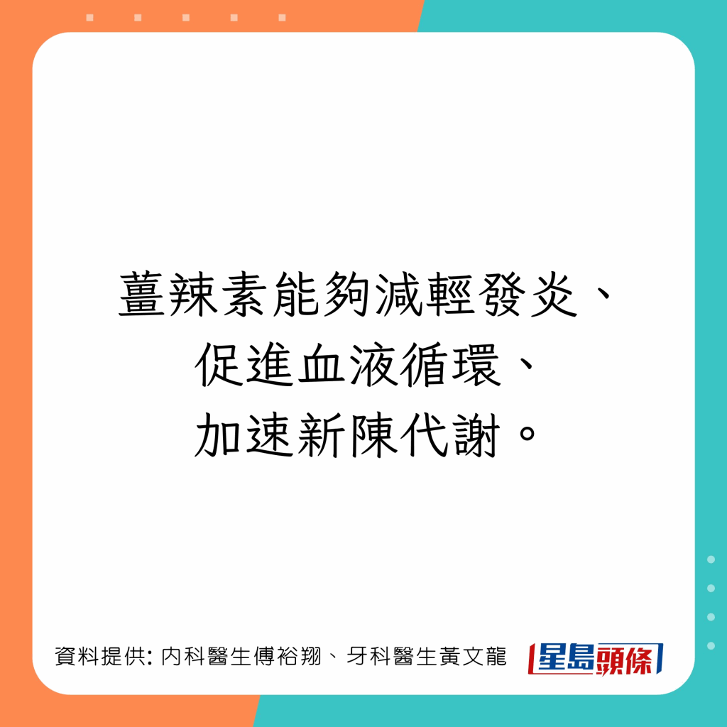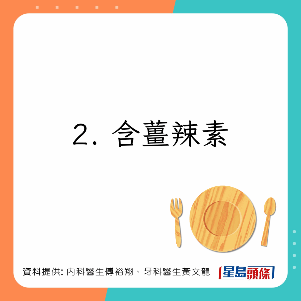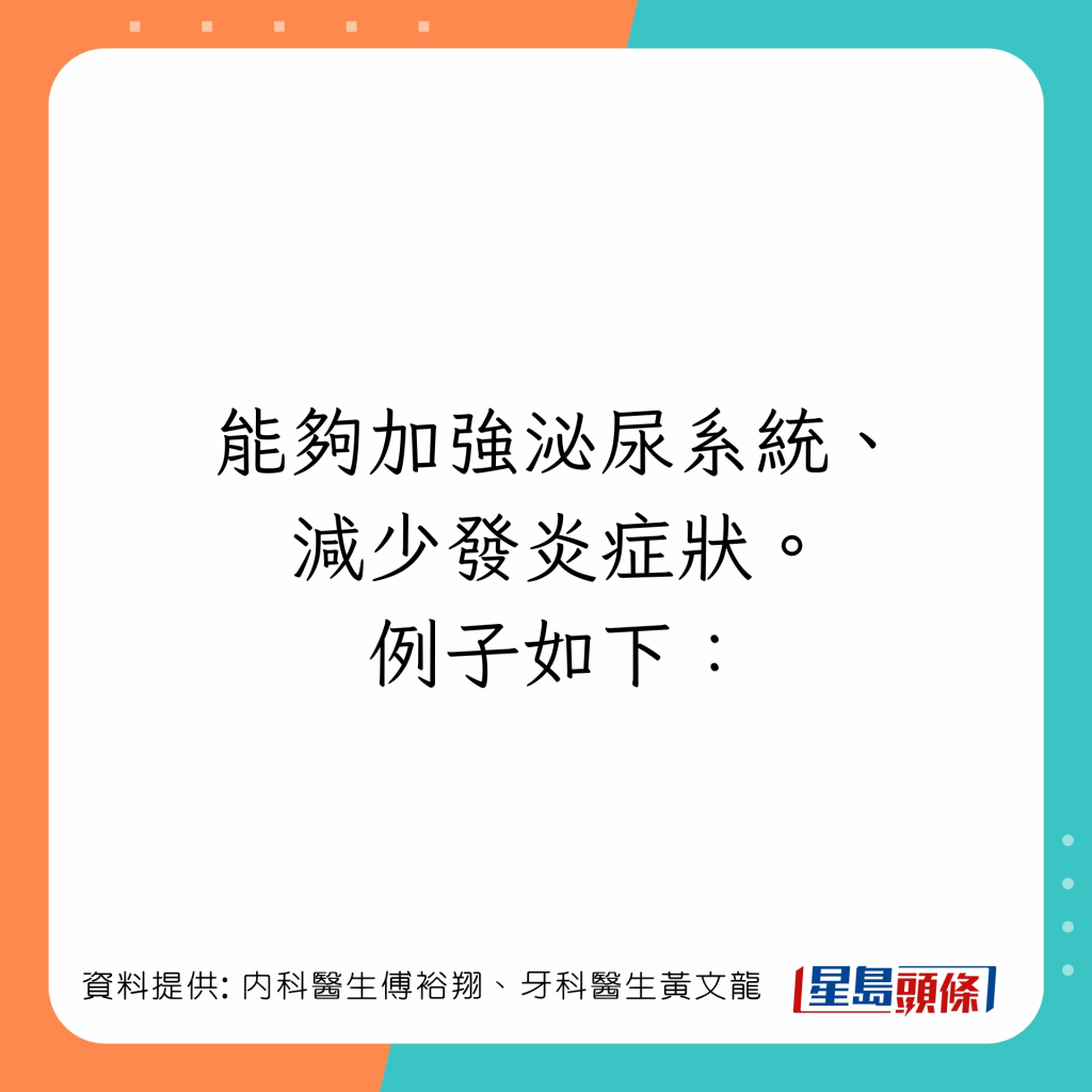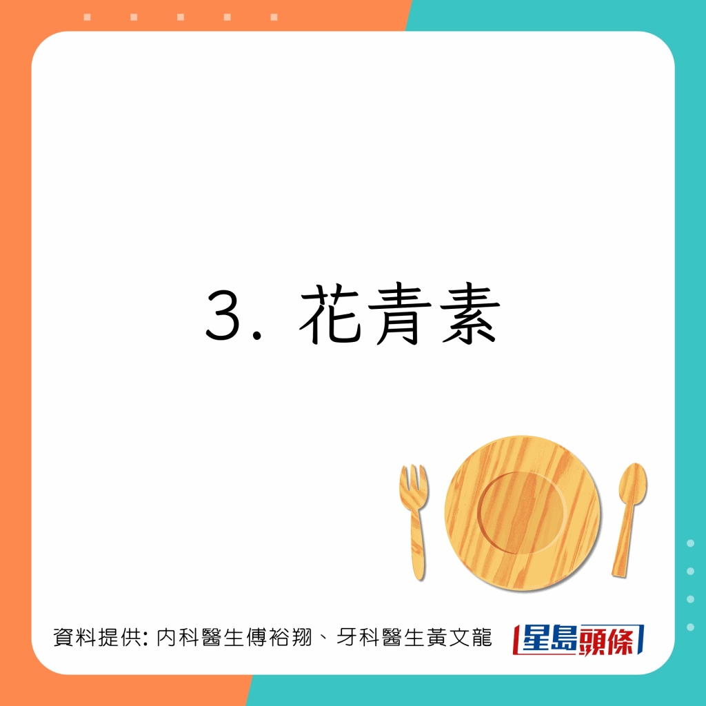 台湾内科医生傅裕翔及牙科医生黄文龙于Facebook专页上发文,列出5类有助增强免疫力及抗发炎的食物: