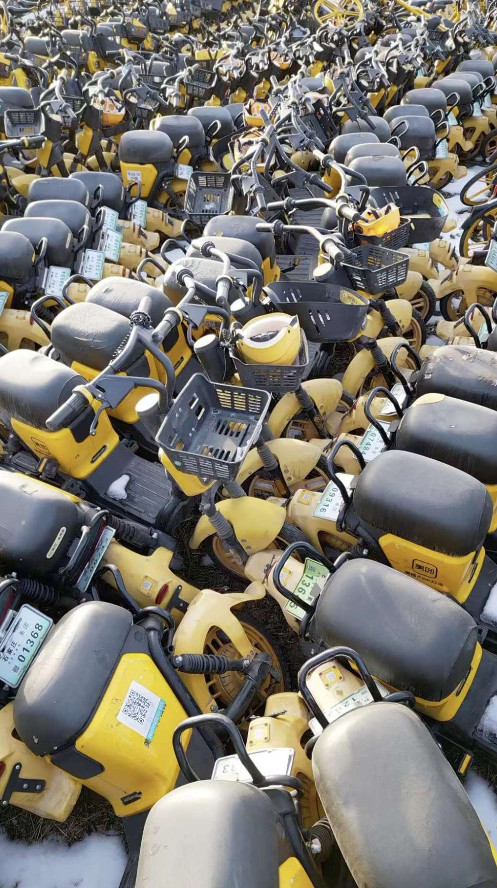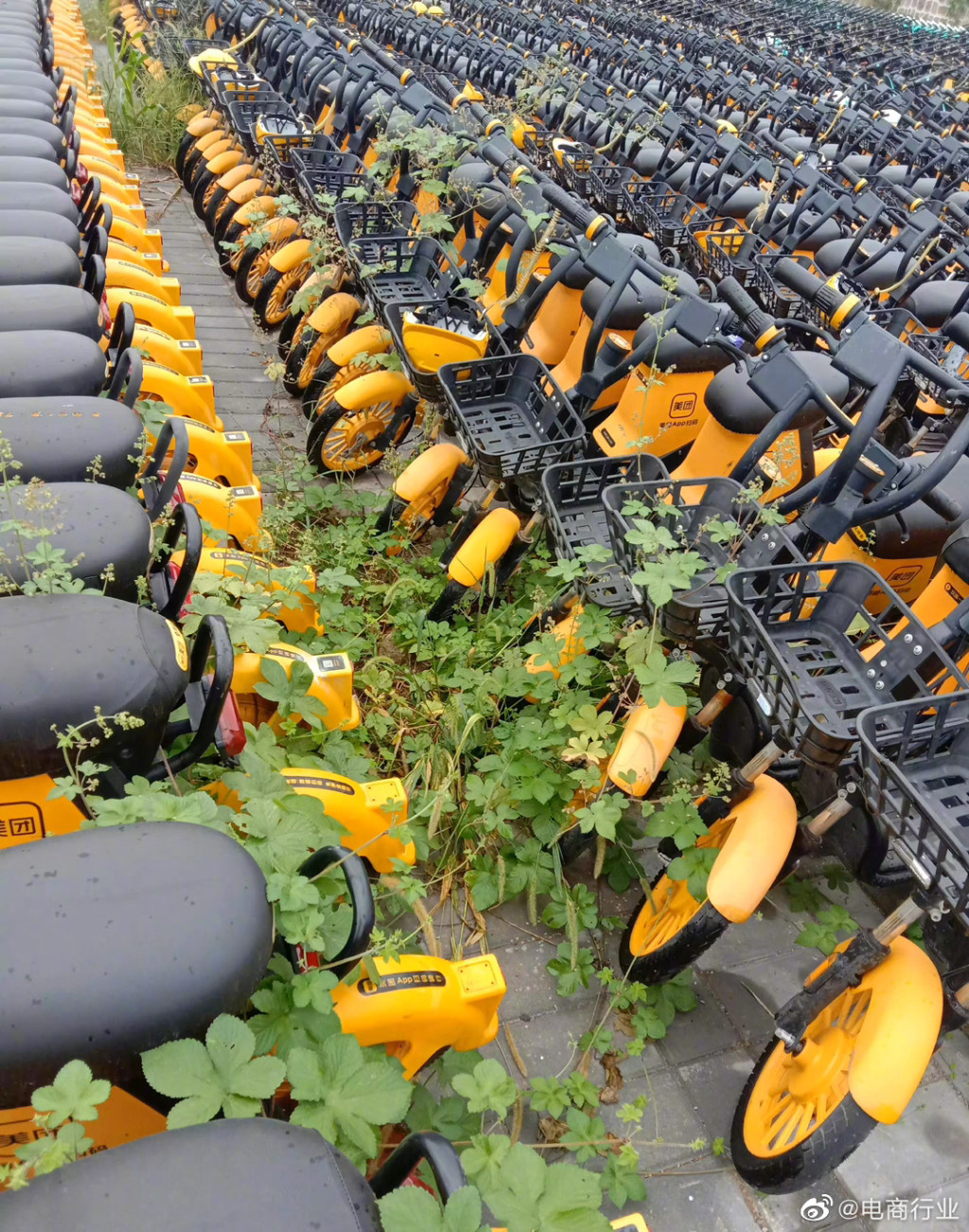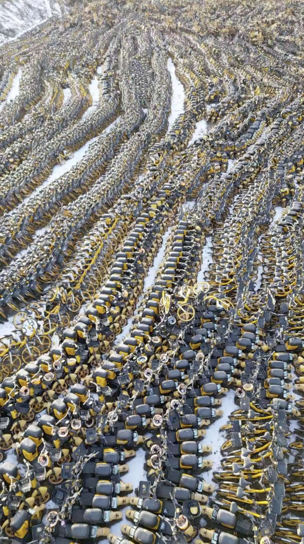 ▲逾万电单车排列在一起,闲置浪费。微博图