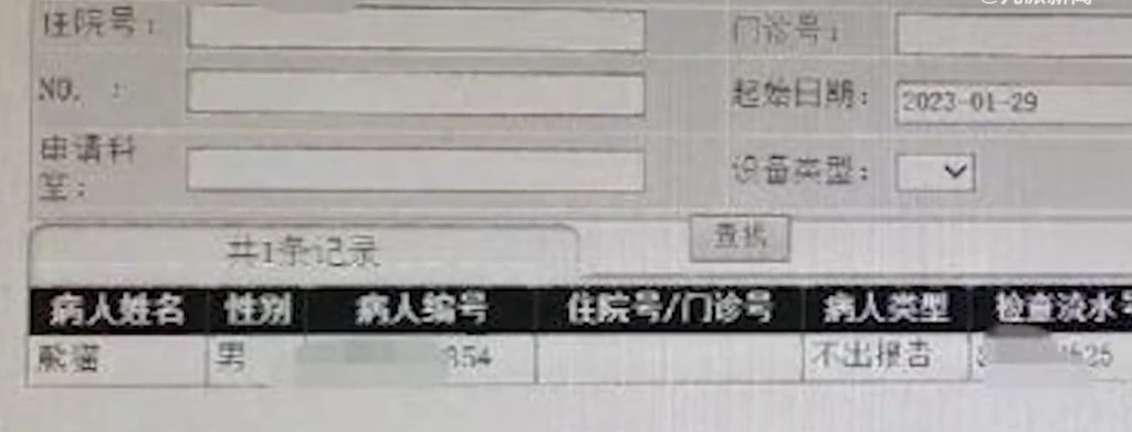 ▲医院病历显示病人姓名为“熊猫”引发关注。 网上图片